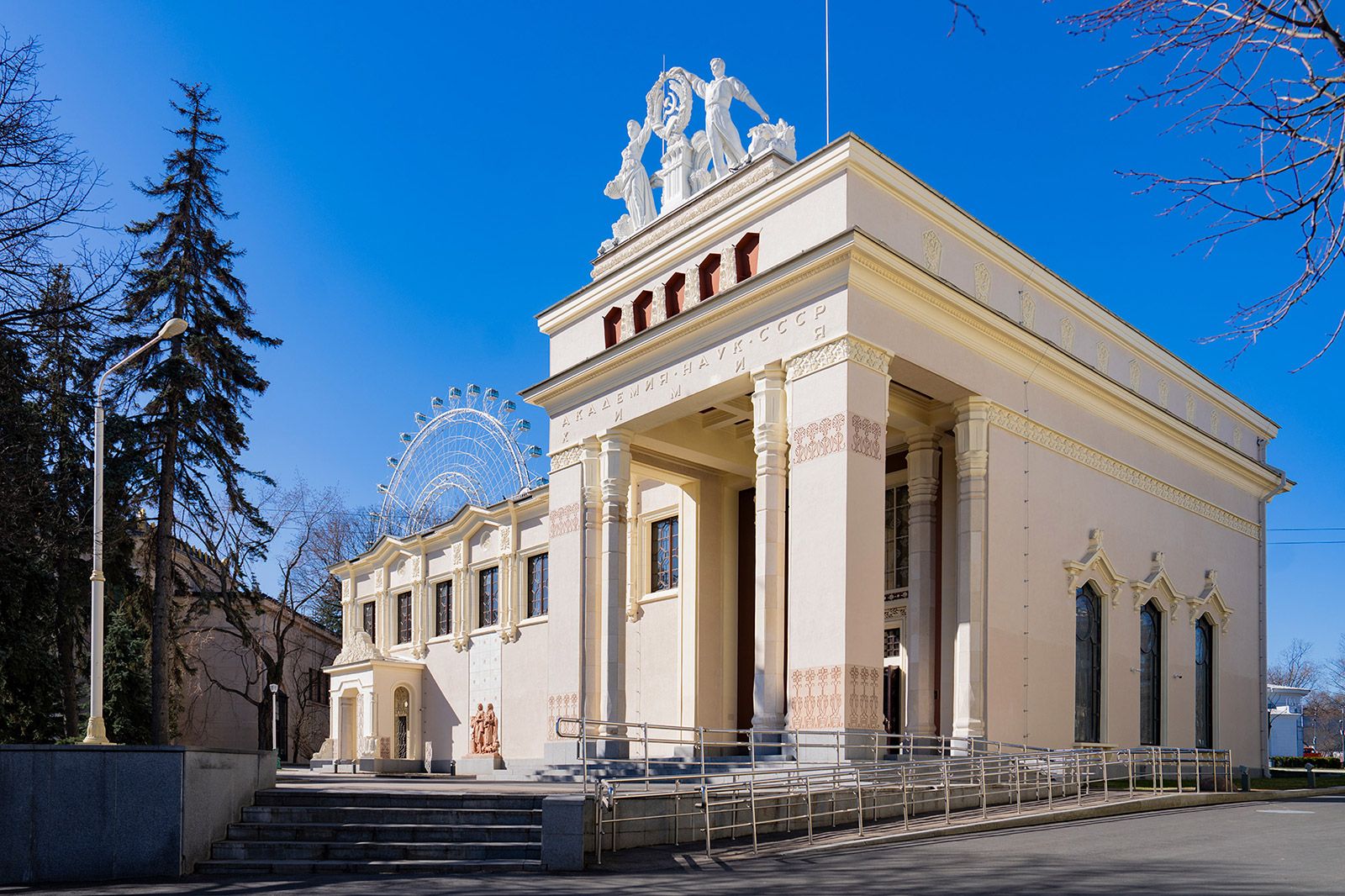Еще один отреставрированный объект культурного наследия, высокий стеклянный купол которого можно разглядеть с катка, — павильон № 8 «Юные натуралисты». Это здание было построено в 1954 году. В нем привели в порядок колоннаду главного входа, бронзовые бюсты пионеров-героев, декоративную композицию над куполом здания. Отреставрировали входную деревянную дверь и остекление купола, а также восстановили исторические цвета стен в залах павильона. Люстры, барельефы и терраццо стилобата воссоздали по сохранившимся архивным фотографиям. Посетители ВДНХ могут увидеть павильон практически таким же, каким его спроектировала группа молодых советских архитекторов 70 лет назад.