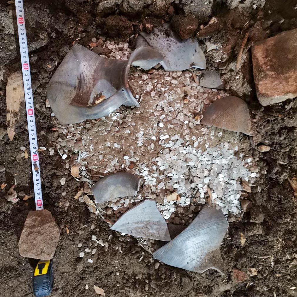 Сотрудники Департамента культурного наследия города Москвы совместно со столичными археологами под охраной представителей Министерства внутренних дел Российской Федерации изъяли находку. Фрагменты чернолощеного кувшина также собрали, и он будет восстановлен реставраторами. В соответствии с законодательством клад передали под охрану в московскую полицию, а исследования и работы по переборке грунта в настоящее время продолжаются.