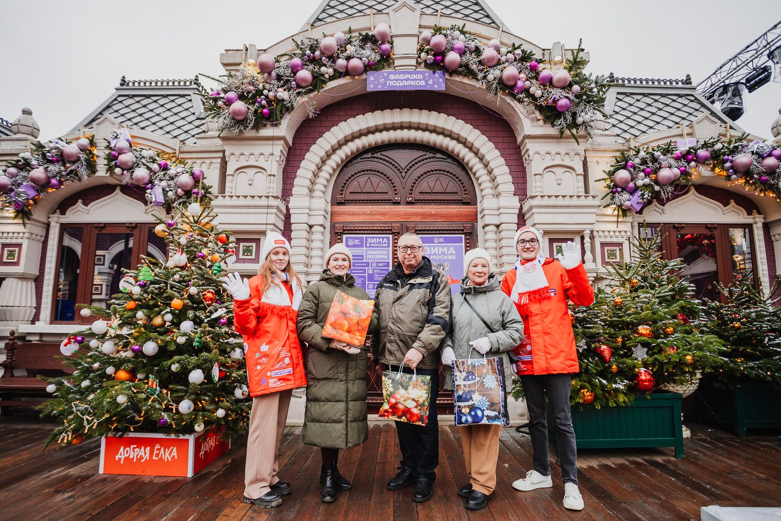 Ежедневно в павильонах «Фабрика подарков» от неравнодушных москвичей волонтеры принимают игрушки, конфеты, книги, наборы для творчества, стельки, головные уборы, термобелье и средства личной гигиены. В рамках акции «Свет добра» горожане передают светоотражающие браслеты и наклейки для жителей приграничных регионов. Зоотовары для эвакуированных животных, находящихся в приютах Белгородской и Курской областей, приносят участники акции «Накорми друга».