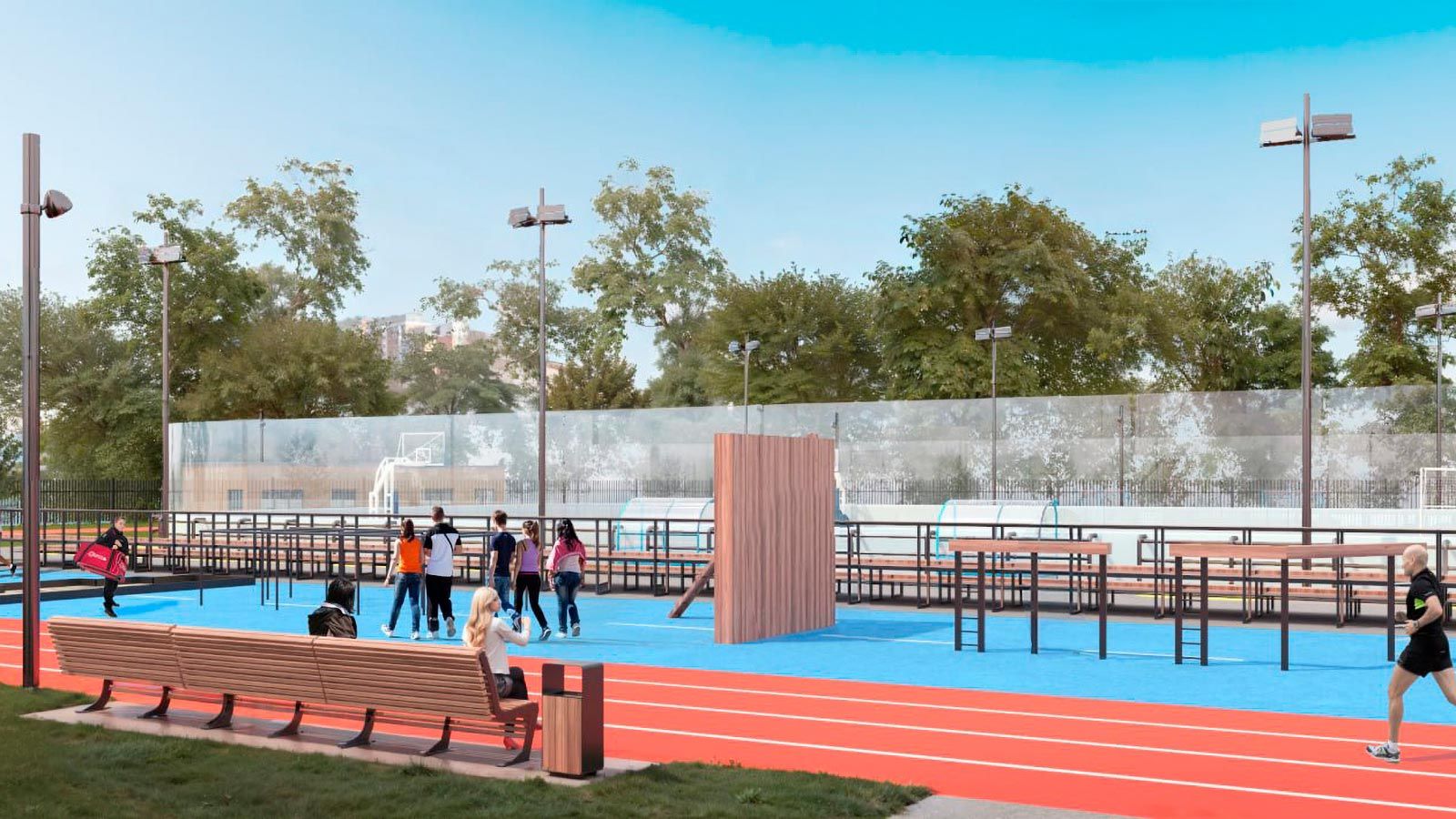 Рядом обустроят каток с трибунами. Летом его можно будет использовать для игры в теннис и волейбол. Кроме того, сделают беговую дорожку, полосу препятствий, воркаут-зону, пространство для прыжков в длину, скалодром, а также площадки для мини-футбола, панна-футбола и баскетбола.