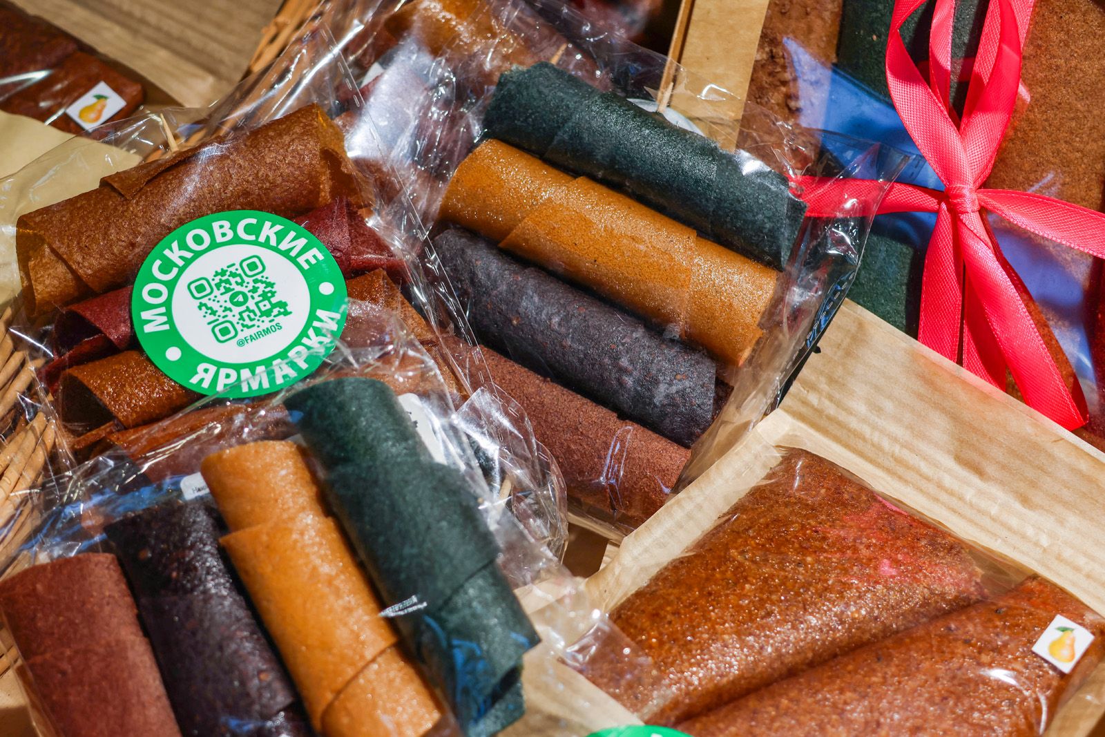 На ярмарке в Электролитном проезде предлагают белгородскую пастилу — смородиновую, облепиховую, сливовую, малиновую и клубничную.