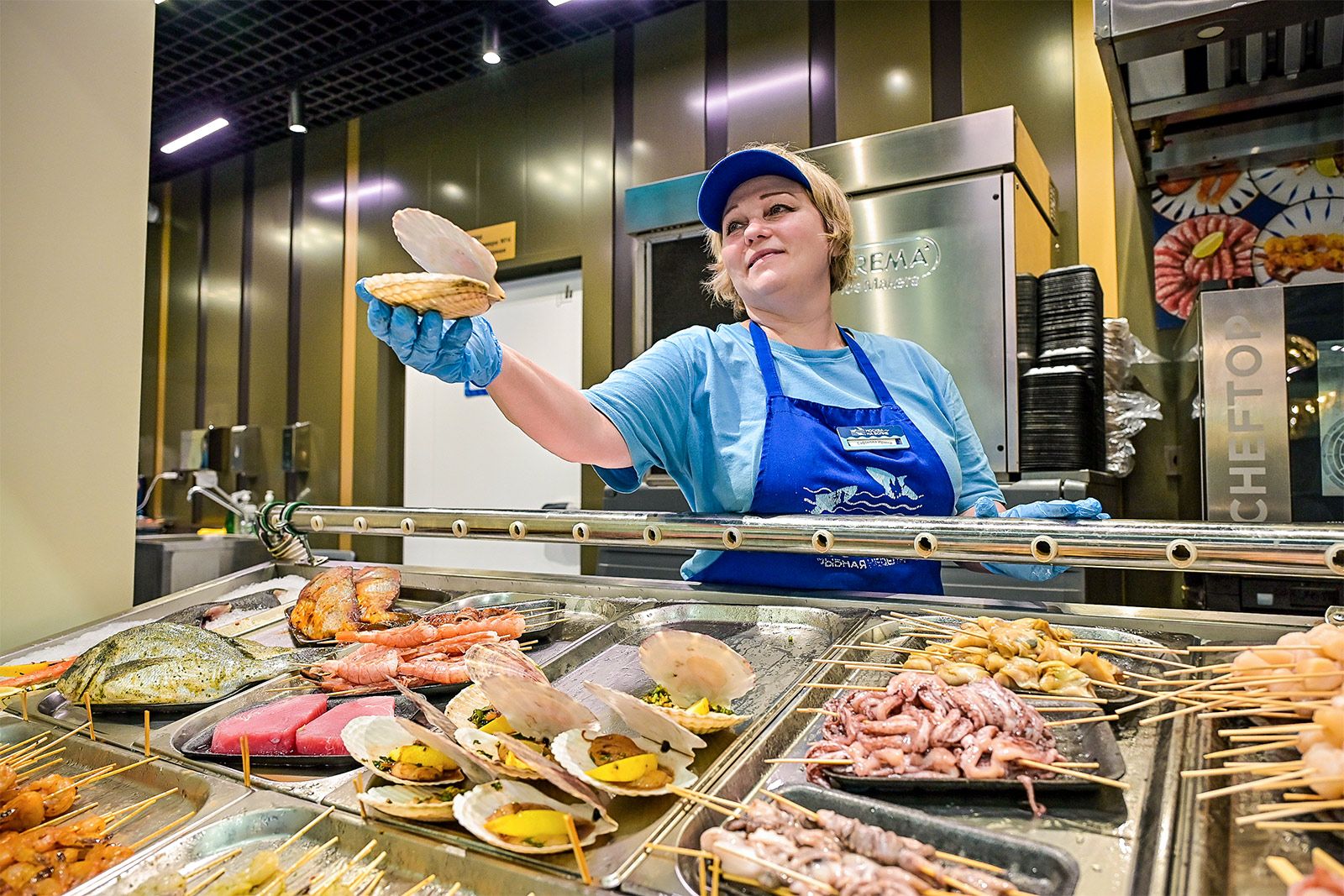 На рынках представлены морепродукты из ключевых рыбных регионов — от Карелии до Камчатки. Кроме того, есть возможность оформить доставку с помощью сервиса «Купер».