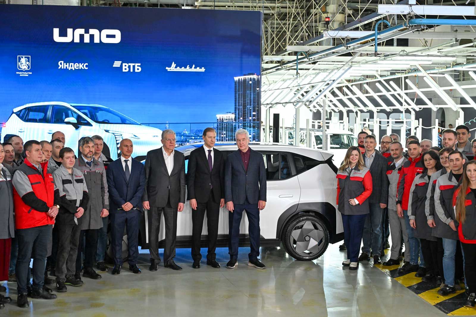 Первый заместитель Председателя Правительства Российской Федерации Денис Мантуров, Мэр Москвы Сергей Собянин и советник по корпоративному развитию компании «Яндекс» Алексей Кудрин приняли участие в открытии производства новой модели электромобиля UMO на втомобильном заводе «Москвич».