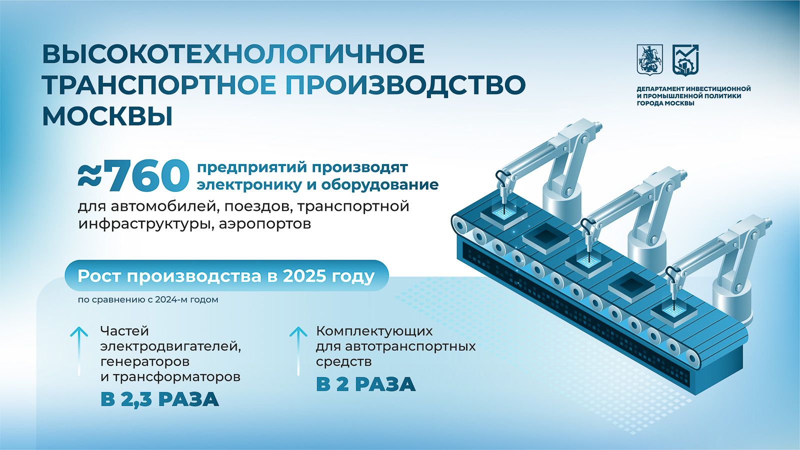 «В 2025 году отрасль продемонстрировала устойчивый рост — производство деталей электродвигателей выросло в 2,3 раза, комплектующих и принадлежностей для автотранспортных средств — в два раза в сравнении с предыдущем годом. Почти на четыре процента увеличился выпуск устройств электрической сигнализации, электрооборудования для обеспечения безопасности или управления движением на железных и автомобильных дорогах, трамвайных и водных путях, а также на площадках для парковки, в портовых сооружениях или на аэродромах», — отметил Сергей Собянин.
