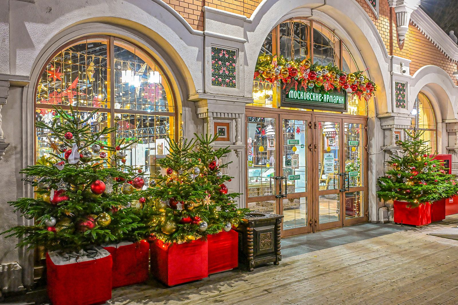 Московские ярмарки выходного дня и межрегиональные площадки украсили перед новогодними праздниками. На входе посетителей встречают традиционные ели, украшенные световыми гирляндами. Прилавки также оформили с помощью иллюминации. Кроме того, в павильонах установили тематические арт-объекты.