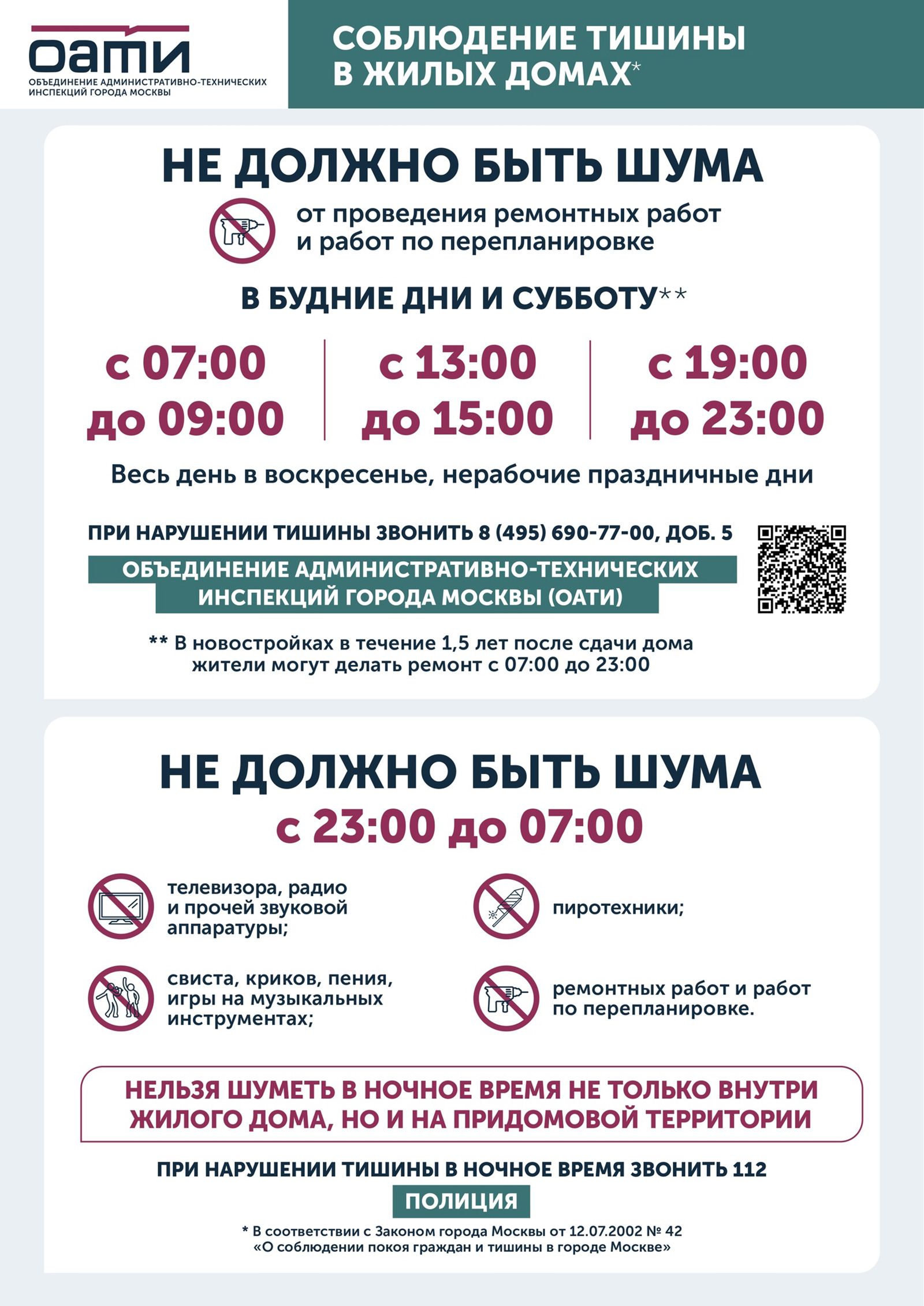 Если же договориться не получилось и в отведенное по закону время для тишины и отдыха соседи часто проводят шумные ремонтные работы, можно обратиться в ОАТИ по телефону: +7 495 690-77-00 (добавочный 5).