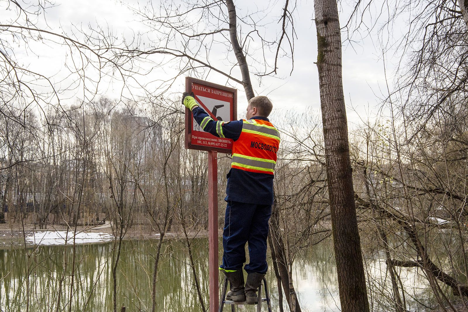 Весной специалисты меняют зимние информационные щиты «Выход на лед запрещен!» на летние — «Купаться запрещено!». Это нужно для предупреждения несчастных случаев на воде. Знаки размещают так, чтобы из любой точки водоема был отчетливо виден хотя бы один щит.
