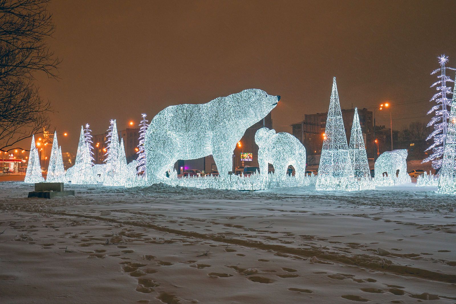 «Традиционно установим по всему городу световые декоративные конструкции, которые создают особую праздничную атмосферу и служат дополнительным источником освещения в темное время суток. Сегодня приступили к монтажу одной из самых популярных новогодних композиций — “Полярных медведей”. Традиционно ее разместим на проспекте Мира, недалеко от Ростокинского акведука, реконструкцию которого провели в этом году», — рассказал Петр Бирюков.