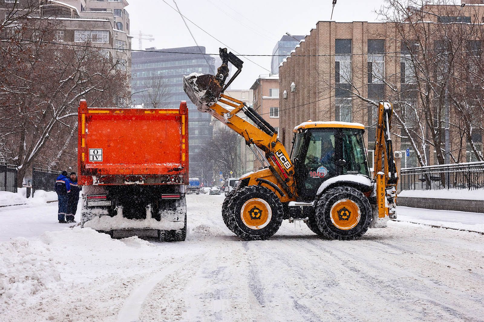 В городе также проводят погрузку и вывоз сформированных за время сильнейшего снегопада снежных валов.