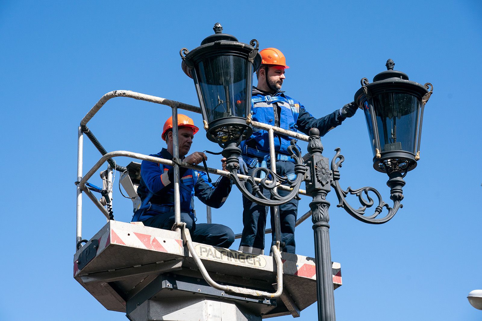 Специалисты обследовали газовую систему, чтобы исключить утечку газа. А с помощью автовышек проверили целостность и сохранность калильных колпачков, обеспечивающих горение фонарей и правильность работы автоматической системы безопасности. Кроме того, мастера проконтролировали регулировку зазоров и качество свечения. В завершение промыли и почистили детали фонарей, свет которых теперь будет ярче и теплее.