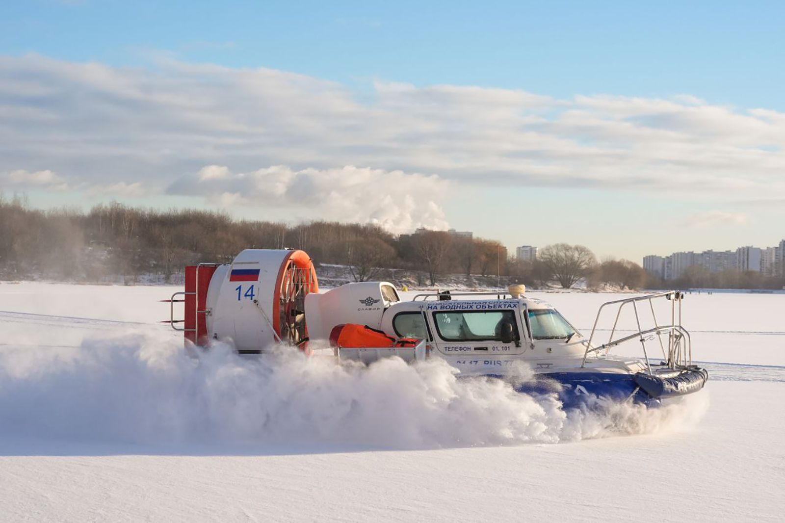 Спасатели патрулируют водные акватории на судах на воздушной подушке. Всего задействовано более 25 единиц такой техники. Этот уникальный транспорт способен передвигаться по воде и льду со средней скоростью 50–80 километров в час. Все суда укомплектованы средствами спасения. Дополнительно в зимний период используют также подвижные спасательные посты и водолазный спасательный автомобиль.