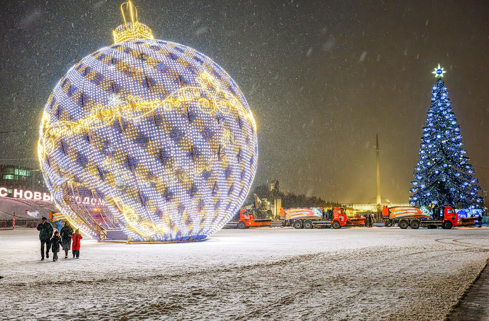 Одно из главных новогодних украшений города высотой 20 метров состоит из 176 тысяч светодиодов. Его диаметр — 17 метров, вес — около 35 тонн, а общая протяженность металлоконструкции — пять километров. Войдя внутрь, можно увидеть световое шоу с музыкальным сопровождением.