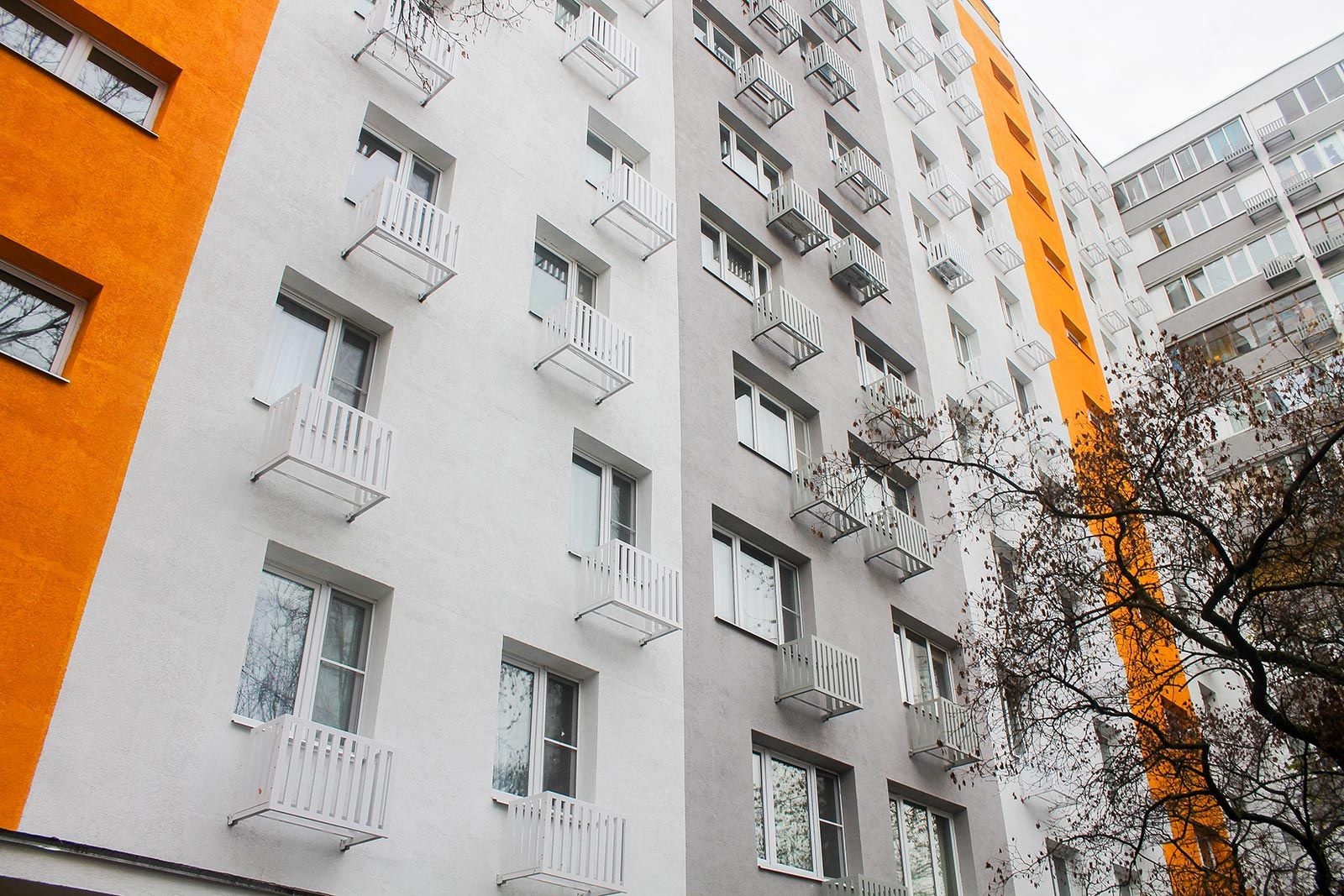 Параллельно мастера смонтировали корзины для кондиционеров и привели в порядок входные группы, а на балконах оштукатурили и окрасили балконные плиты. В местах общего пользования установили современные стеклопакеты. Специалисты также обновили отмостку и цоколь зданий.