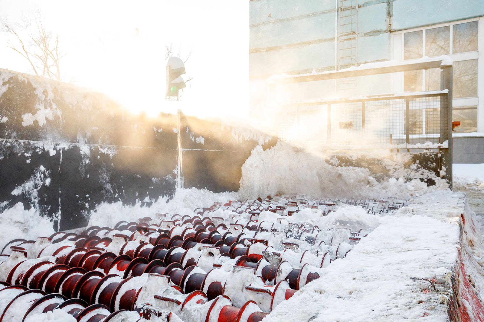 Принцип работы снегосплавных пунктов основан на использовании тепла сточных вод для плавления снежной массы. Осадки загружают в приемный бункер, оснащенный сепараторами-дробилками для измельчения, после чего они поступают в специальный отсек, куда подается сточная вода температурой не ниже 10 градусов. При этом мусор оседает в песколовках, а талая вода возвращается в канализационный коллектор и направляется на очистные сооружения, где проходит полный цикл механической и биологической очистки.