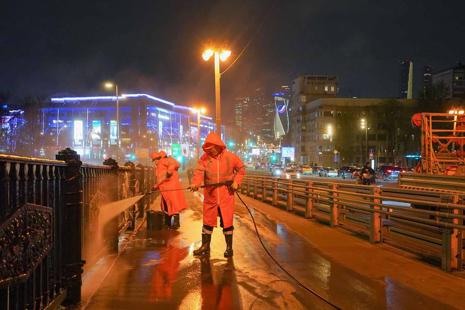 В Москве в рамках весенней уборки промыли Бородинский мост