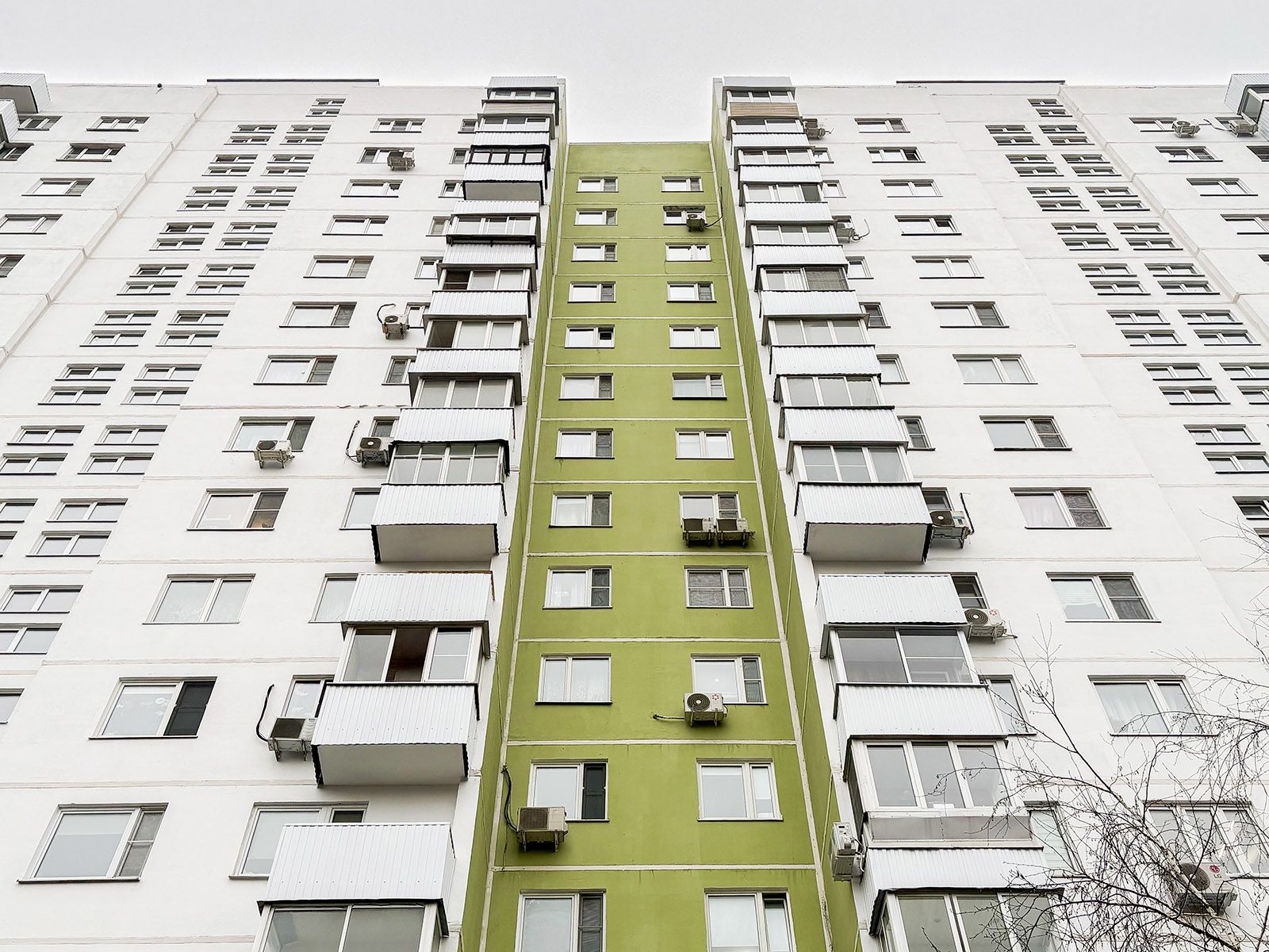 Затем приступили к покраске наружных стеновых панелей и герметизации швов. Окрасили фасады в яркий и современный оттенок «зеленая молодая весна», а также в сигнальный белый цвет.