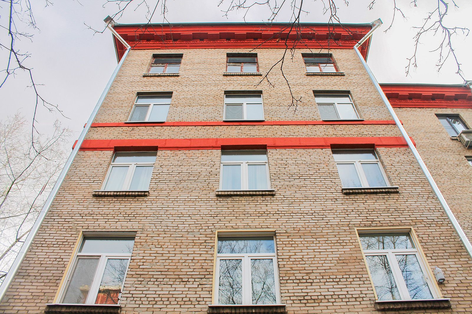 На объекте обновили фасад, подвал и крышу, а также инженерные системы. Работы по кирпичному фасаду начались с расчистки открытых плоскостей и ремонта кладки. Места замокания специалисты обработали антигрибковыми составами, далее фасад гидрофобизировали. Специалисты привели в порядок декоративные элементы на здании: каннелированные колонны, межэтажные пояса, наличники, венчающий карниз. После завершения основных работ на фасадах отремонтировали входные группы, заменили двери, обновили цоколь здания и систему внешнего водостока.