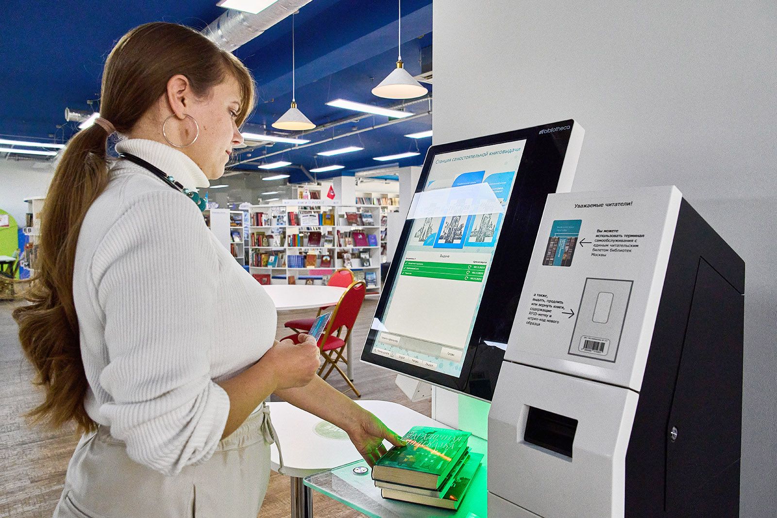 Теперь посетители могут самостоятельно брать и возвращать литературу. Для этого достаточно положить стопку книг с RFID-метками на специальную платформу станции самообслуживания и отсканировать читательский билет. Система мгновенно считает данные и обновит профиль пользователя.