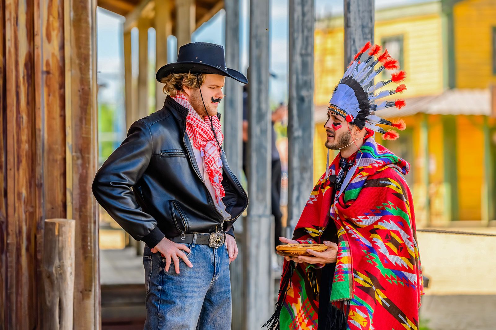 На площадке «Москва 1940-х годов» с 12:00 до 19:00 пройдет театрализованный квест «Гости Изумрудного города». Участники представят себя волшебными героями и отправятся в путешествие вместе с Дровосеком и Страшилой, чтобы победить злую правительницу Голубой страны — колдунью Гингему. В декорации «Ковбойский городок» дети смогут проникнуться духом Дикого Запада, приняв участие в квесте «Пироги и пули». Ребятам предстоит разнимать ковбоев и индейцев, которые вступили в перепалку.