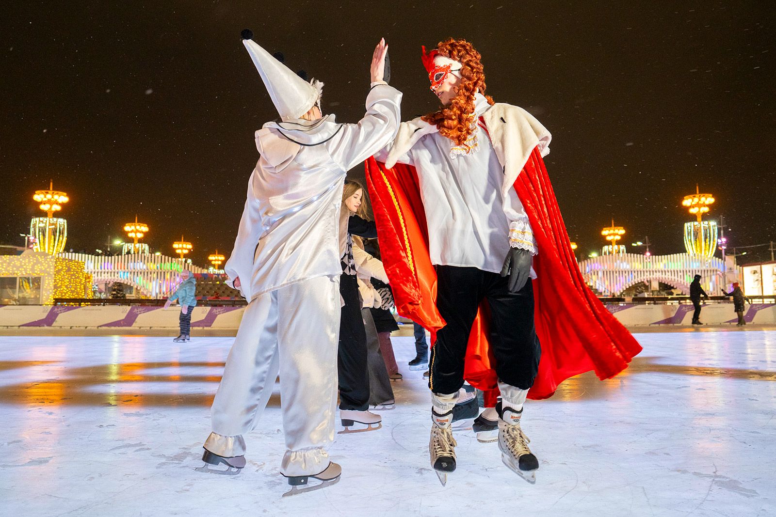 Для любителей активного отдыха работает каток площадью более 20 тысяч квадратных метров. Он расположен вдоль Главной аллеи, вокруг фонтанов «Дружба народов» и «Каменный цветок». С 3 по 10 января здесь будут показывать балет на льду «Лебединое озеро». Среди участников — фигуристы команды двукратного олимпийского чемпиона, трехкратного чемпиона мира Евгения Плющенко, олимпийская чемпионка, чемпионка Европы Юлия Липницкая и чемпионка Европы Алена Косторная. Кроме того, состоятся сеансы катания в ночь с 27 на 28 декабря, с 3 на 4 и с 6 на 7 января.