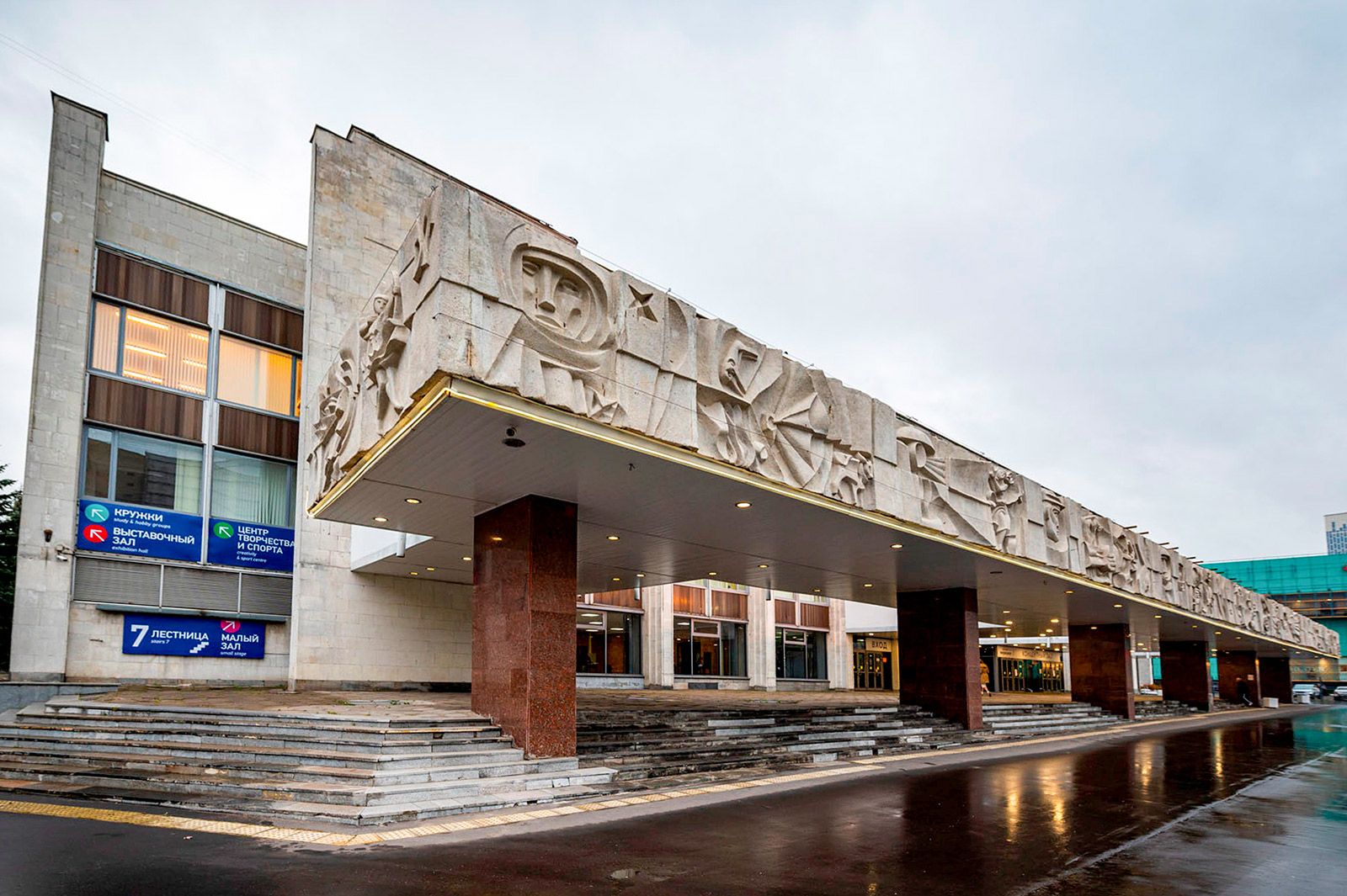 Здание культурного центра «Москвич» — образец позднего советского модернизма. Однако его оформление уже более современное. Так, стены и лестницы украшают славянская вязь и геометрическая работы в черно-белых цветах. Их авторы — победители всероссийского арт-проекта Моспродюсера «Контуры культуры» Дмитрий Ламонов и Игорь Бойко (Van Gee).