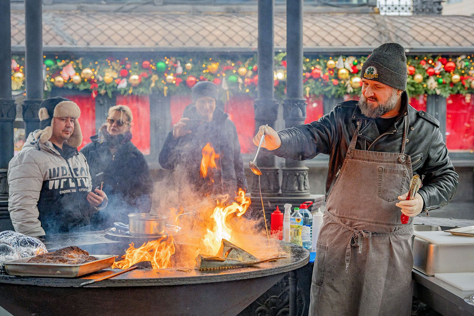 Участники фестиваля «Путешествие в Рождество» предлагают москвичам вкусные сезонные блюда, специально подготовленные шеф-поварами для того, чтобы их было удобно есть во время прогулки по городу.
