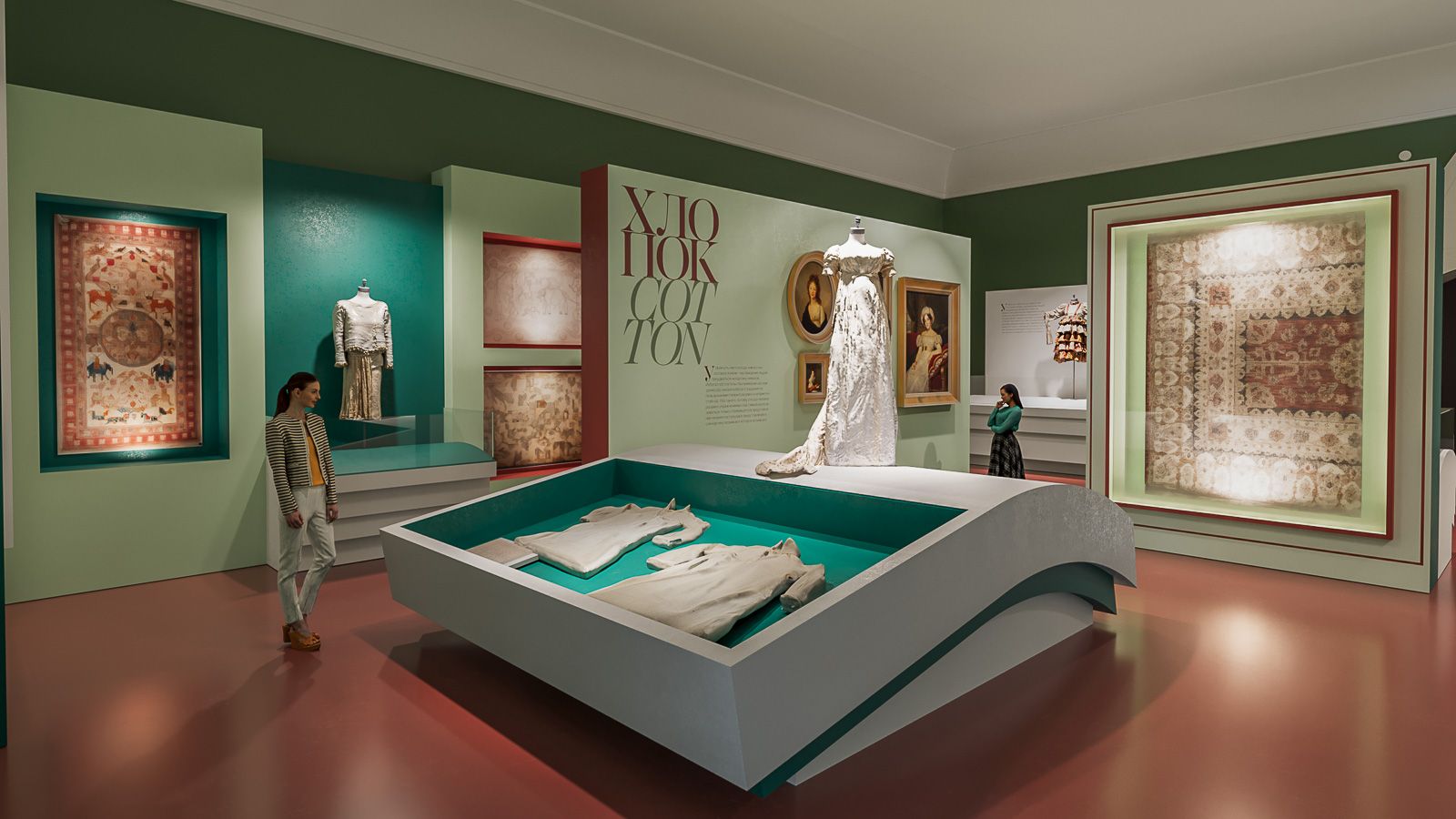 Экспозиция разместится в семи залах. Каждый из них будет посвящен определенной теме: истории хлопка, шелка, шерсти, вышивке, окрашиванию, орнаментам и сари. В зале окрашивания гости смогут узнать о краске индиго, благодаря которой джинсы стали самой универсальной одеждой в мире. Посетители увидят уникальные ручные вышивки, сари, сотканные с применением натурального золота, и тюрбаны из тончайшего муслина, а также богато расшитые яркими шелками свадебные покрывала из провинции Пенджаб.