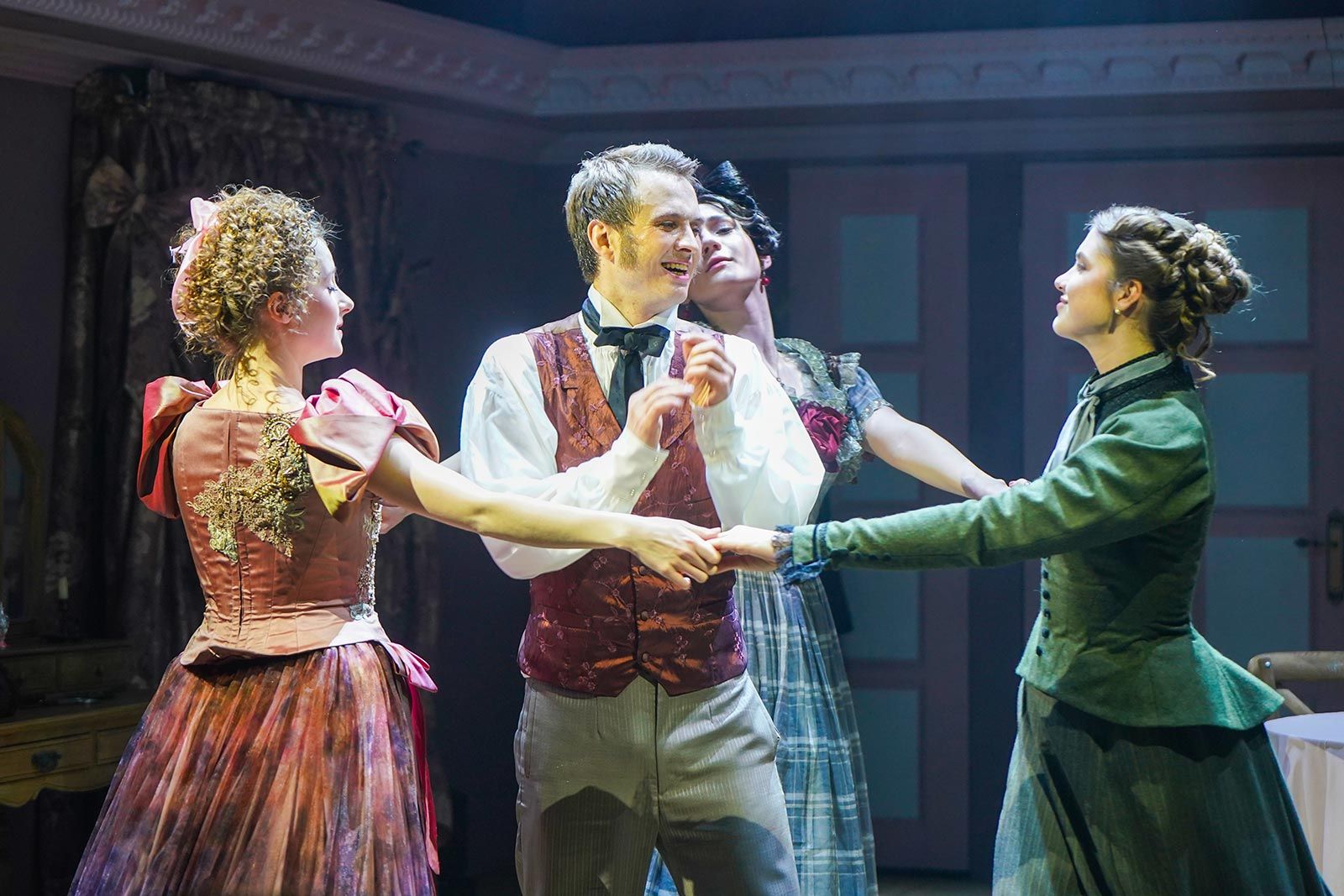 Особенно комичными и очаровательными все эти любовные коллизии делает жанр водевиля, в котором создан спектакль. Водевиль возник в конце XV века во Франции как жанр легких сатирических песен — певцы исполняли их прямо на улицах. Чуть позже их стали вставлять в комедийные пьесы, и уже к концу XVIII века водевиль стал самостоятельным театральным жанром, отличающимся обязательными музыкальными вставками, легкими и смешными. В России он стал популярен в XIX веке, а среди его самых заметных мастеров — Владимир Соллогуб.