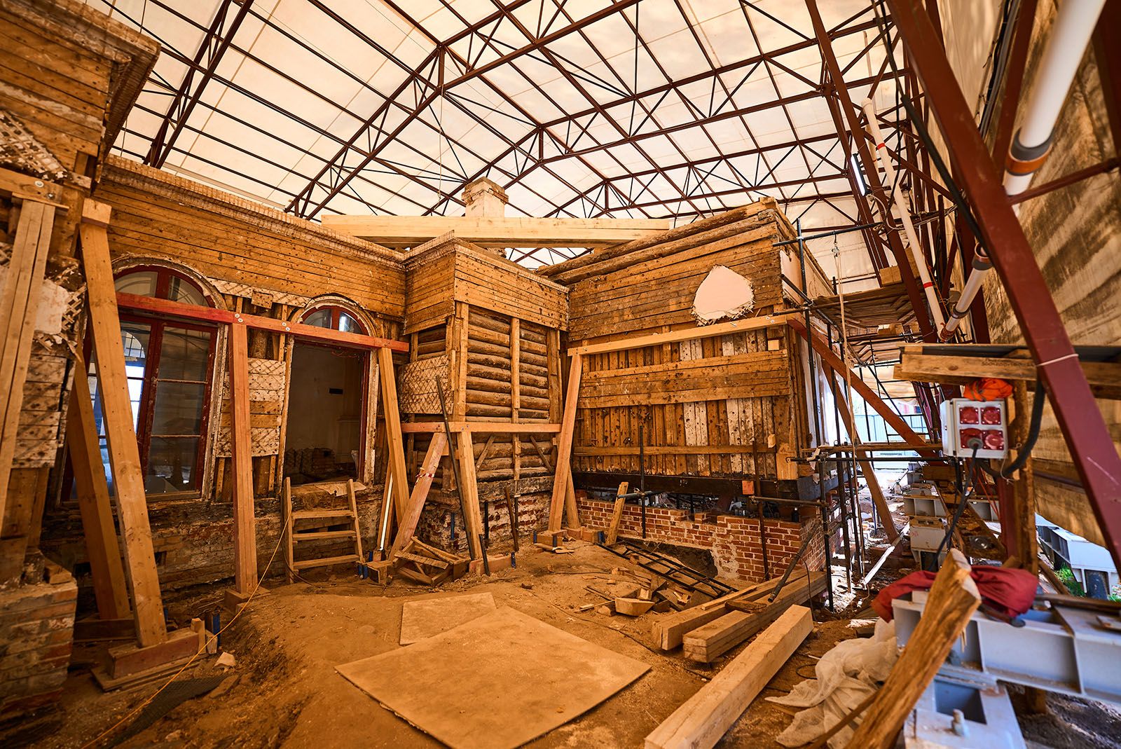 На самом же деле более бережной работы быть не может. Чтобы отреставрировать фундамент, придется разобрать здание до основания — так подсказывает логика. Оказывается, возможно «вывесить» стены в воздухе. Историческая конструкция дворца определила выход: сохранились приемы закладки диагоналей и раскосов, что и помогало распределить нагрузку. Реставраторы прочитали эту логику и воспроизвели в современном виде.