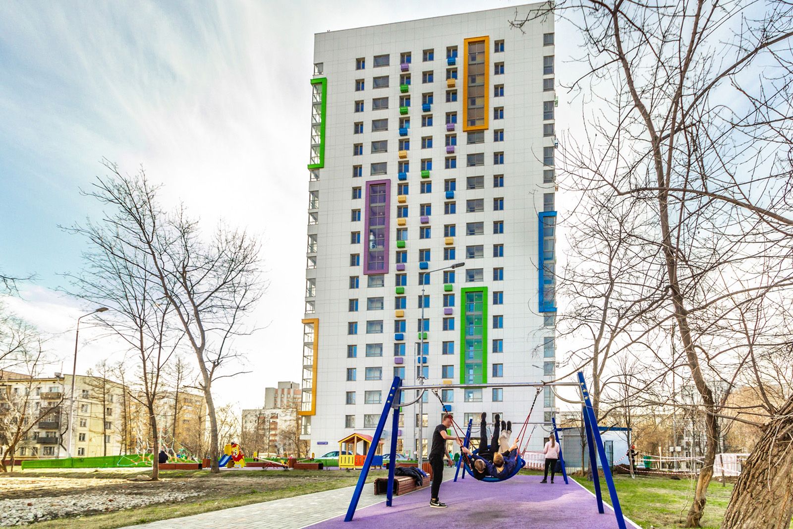 Переданные под заселение жилые комплексы отвечают критериям безбарьерной среды. Благоустройство придомовых территорий выполнено с учетом интересов всех жителей. Рядом с домами оборудованы детские и спортивные площадки, есть зоны для отдыха.