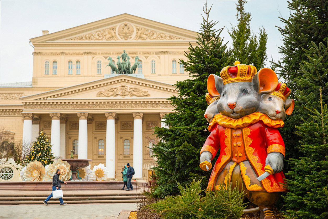 Площадь перед Большим театром превратилась в сцену, на которой ожила волшебная история по мотивам произведения Эрнста Теодора Амадея Гофмана «Щелкунчик и Мышиный король». В ярусном террасном саду среди стилизованных старинных домов с причудливыми крышами разместились театральные ложи с бархатными занавесами и креслами. Вместо летних цветников здесь раскинулся зимний лес. Ели, пихты, можжевельники, клены, яблони и липы украсили гирляндами. Среди заснеженных деревьев можно увидеть скульптуры Щелкунчика и Мышиного короля, а над лесом парит воздушный шар из сказочного Конфитюренбурга. В центре, у фонтана, гостей встречают хрустальные цветы, отсылающие к изящной мелодии из балета Петра Чайковского, под которую танцевали Принц и Мари.