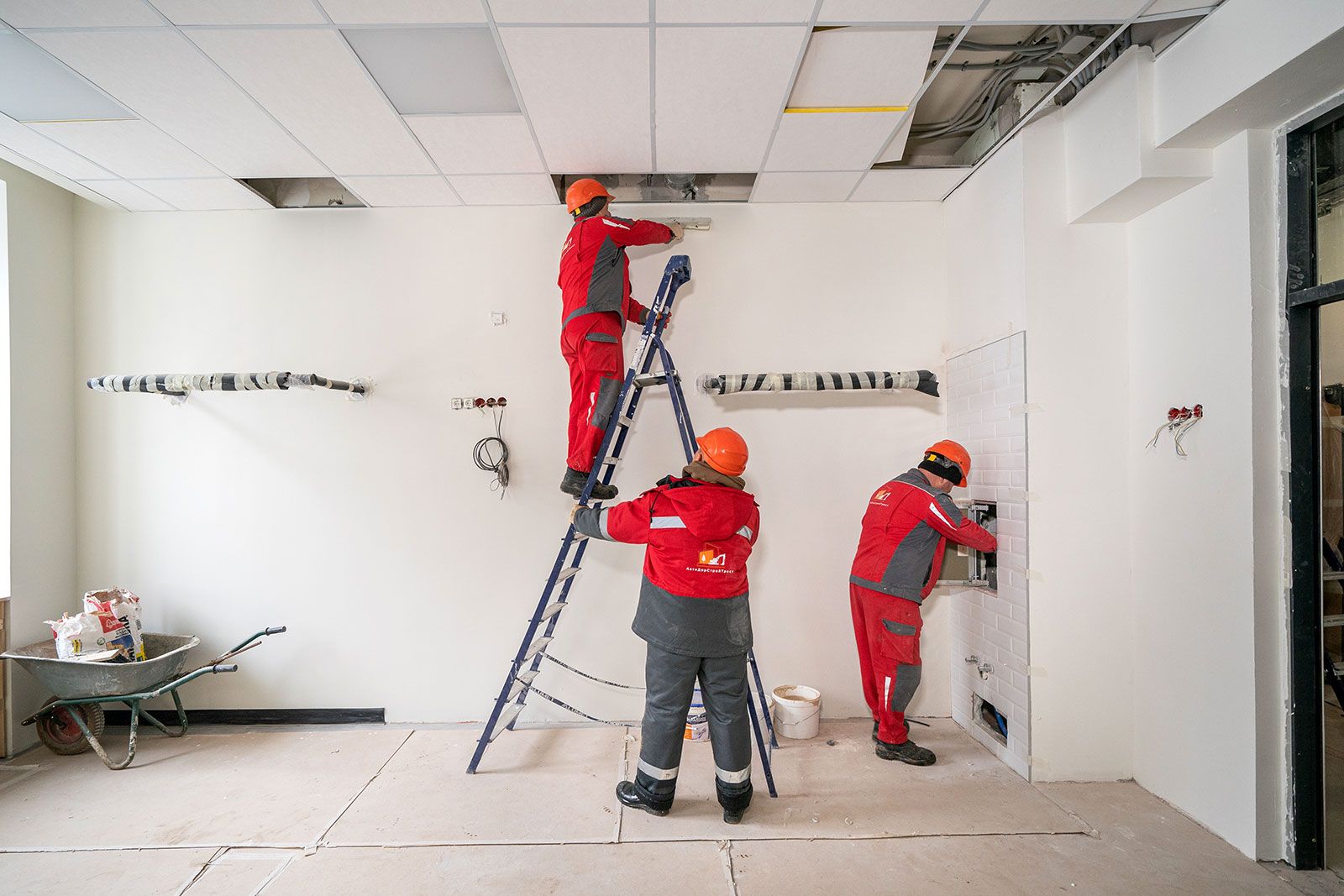 Сейчас специалисты обновляют инженерные коммуникации. Полностью меняют системы вентиляции и кондиционирования, водоснабжения и водоотведения, электроснабжения и слаботочные сети. Вместо чугунных батарей ставят энергоэффективные радиаторы с возможностью регулировки температуры в помещении. В кабинетах прокладывают современную вентиляцию, проводной интернет и вайфай, а также новые слаботочные сети для систем пожарной безопасности, видеонаблюдения, контроля и управления доступом. Помимо этого, устанавливают межкомнатные светопрозрачные двери и выполняют чистовую отделку помещений.