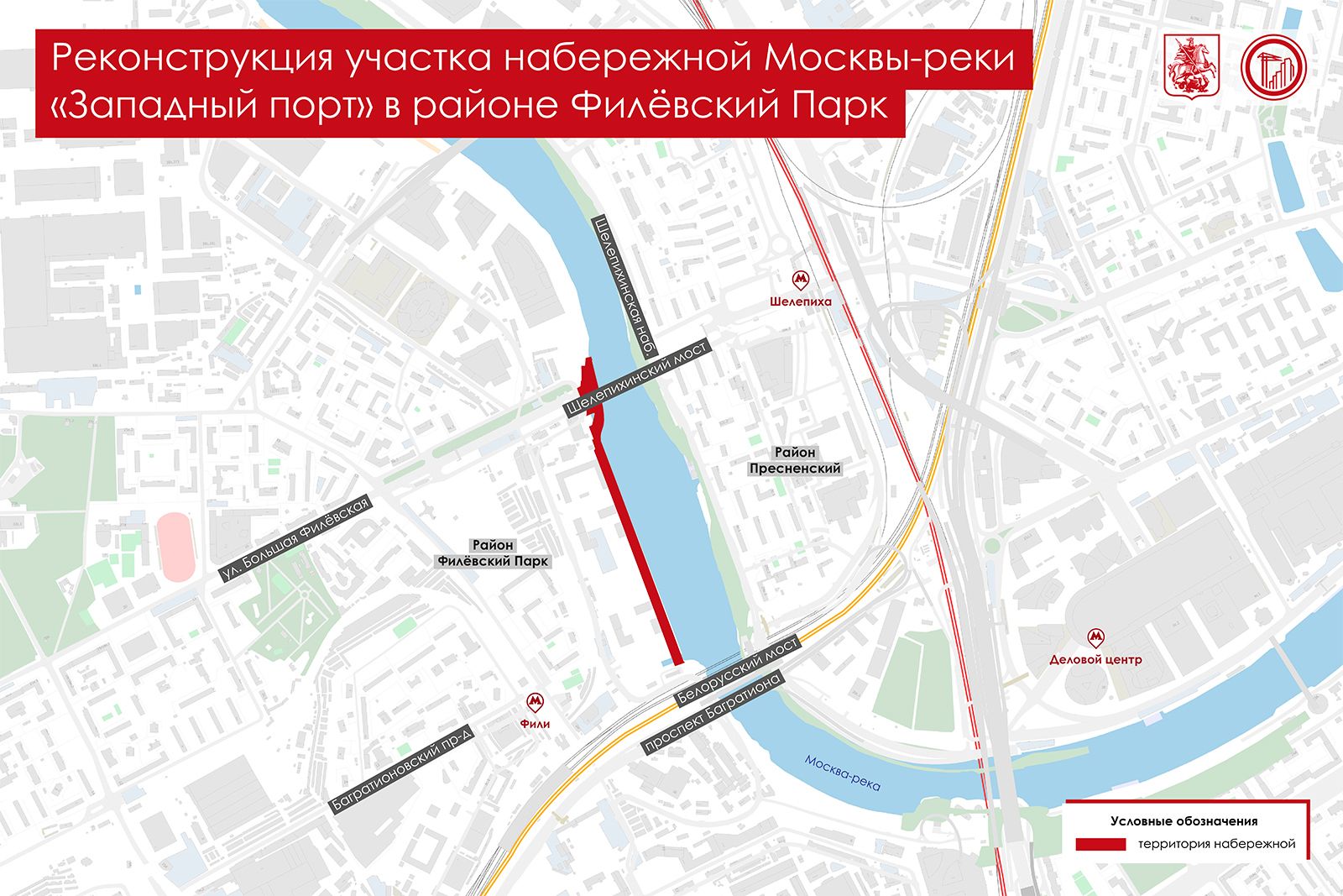 В Филевском Парке реконструируют участок набережной Москвы‑реки «Западный порт» от жилого комплекса «Береговой» до Белорусского моста. К настоящему времени работы выполнены почти на 70 процентов.