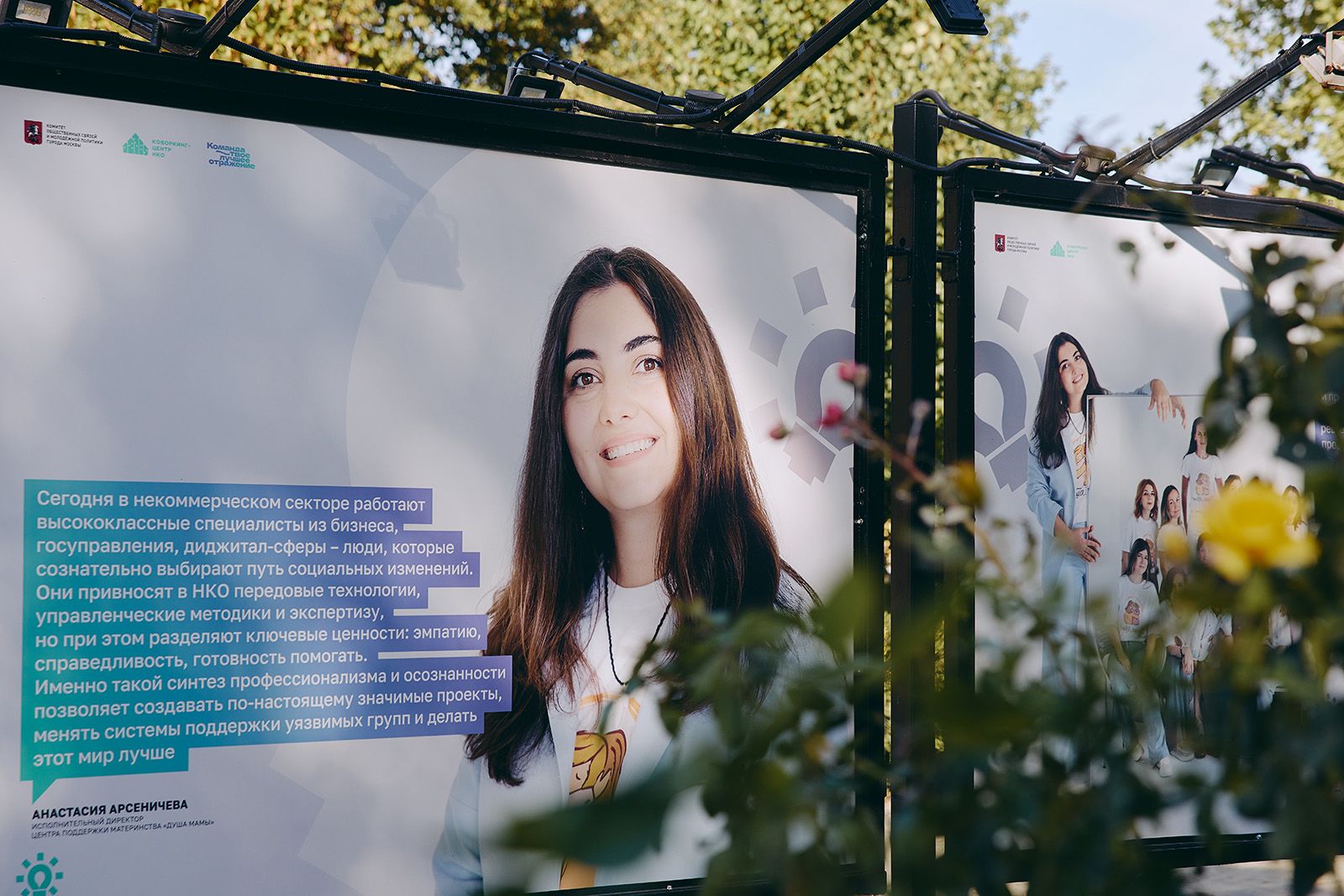 Среди участников фотовыставки — Анастасия Арсеничева, исполнительный директор центра поддержки материнства «Душа мамы», который оказывает психологическую поддержку женщинам. По словам Анастасии, сегодня в некоммерческом секторе работают высококлассные специалисты из самых разных сфер — бизнеса, госуправления, ИТ.