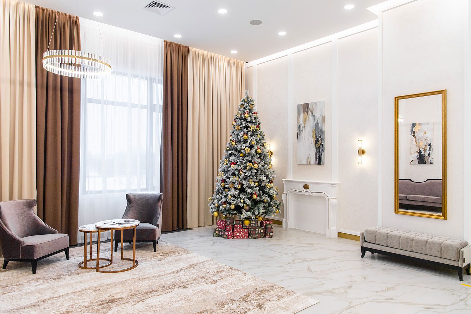 Традиционно холлы дворцов бракосочетания украсили новогодними композициями и гирляндами. Центральным элементом каждого зала стали праздничные елки. Красивой фотозоной станет фасад Дворца бракосочетания № 4 с оригинальной медиагирляндой. Некоторые пары специально выбирают этот период для регистрации, чтобы провести фотосессию в окружении новогоднего декора.