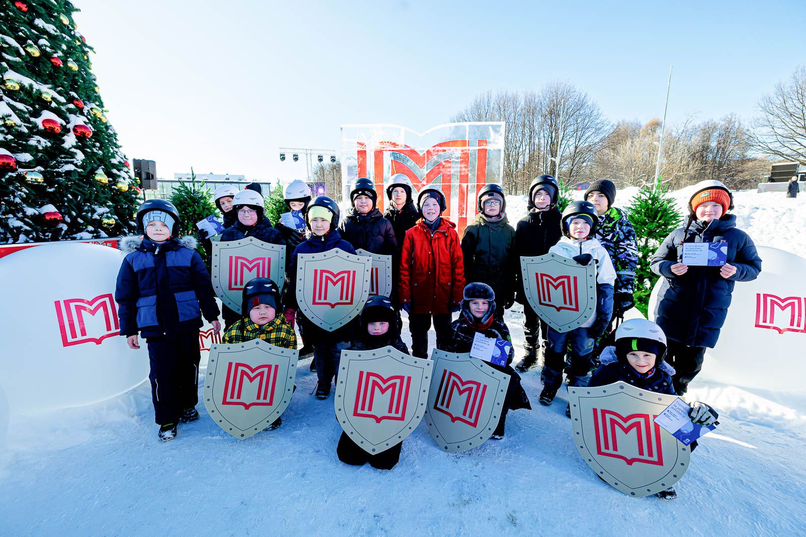Рядом с игровой площадкой организовали специальную фотозону со светящимися шарами и ледяной инсталляцией с символикой московского образования.