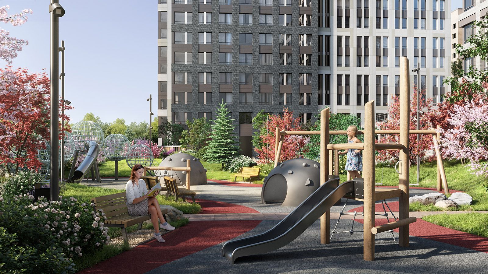 В рамках строительства второй очереди жилого комплекса запланировано благоустройство территории площадью 1,3 гектара. Здесь появятся беседки, детская игровая зона и спортивные площадки, которые будут доступны для всех горожан.