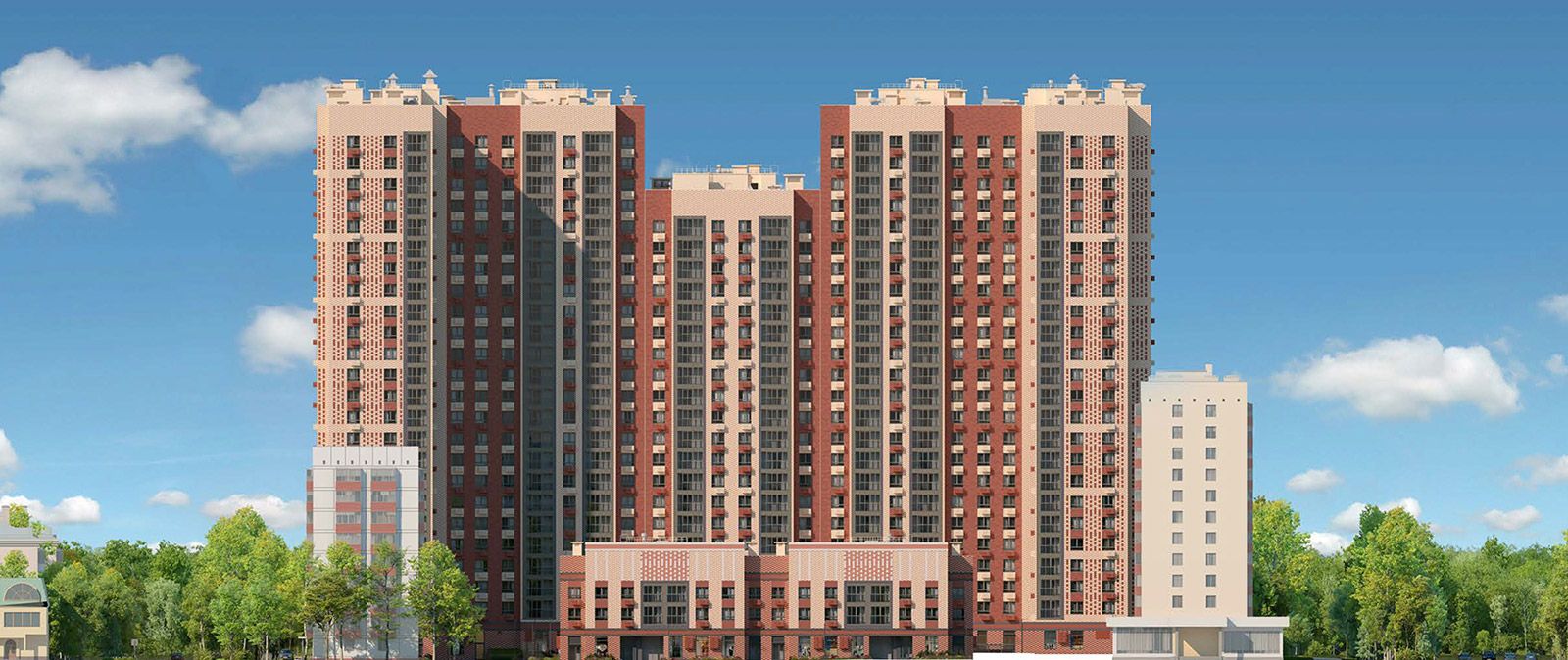 «Фасады комплекса выполнят в бордово-бежевой гамме с применением в отделке керамического кирпича. Простой, но эффектный прием с чередованием разных оттенков позволит создать на секциях запоминающийся геометрический узор», — отметил главный архитектор Москвы, первый заместитель председателя Комитета по архитектуре и градостроительству Сергей Кузнецов.