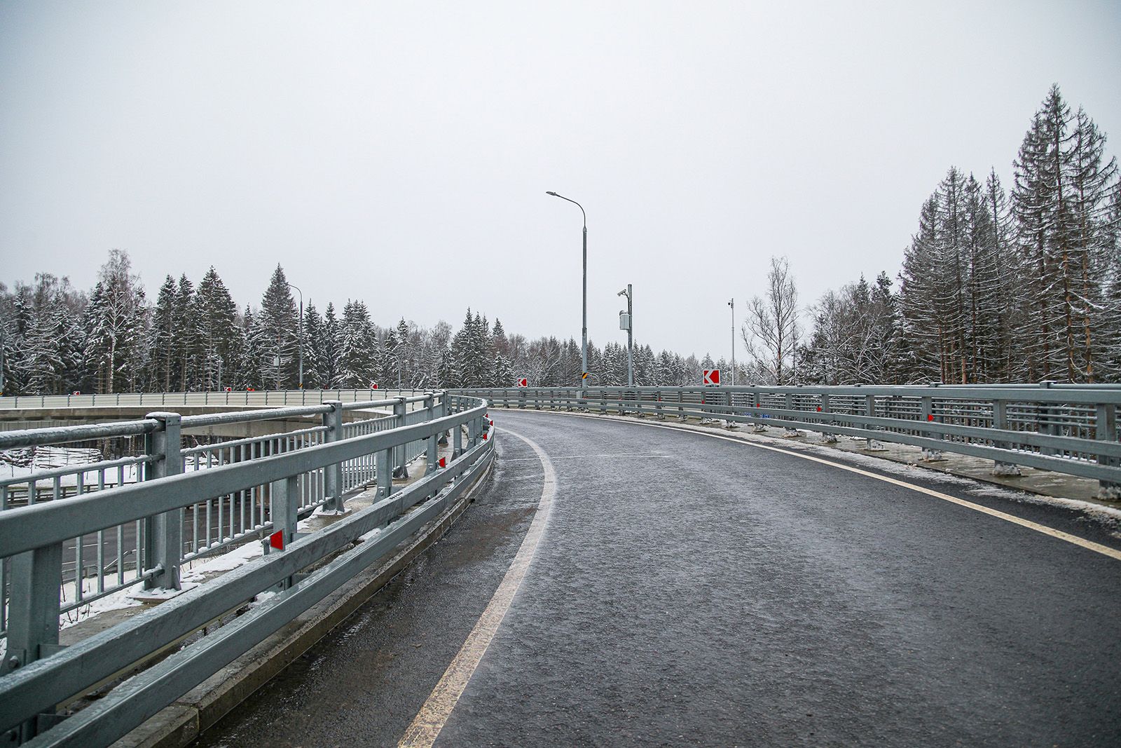 В составе участка возведут три искусственных сооружения: два путепровода (110 метров, две-три полосы движения в каждом направлении) и мост через реку Десну (100 метров, три полосы движения в каждом направлении) с лестничными сходами на набережную.