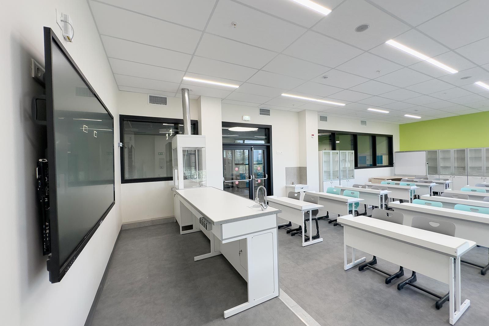 В новом здании разместили универсальные и специализированные учебные кабинеты, медиатеку, спортзал, медицинский блок.