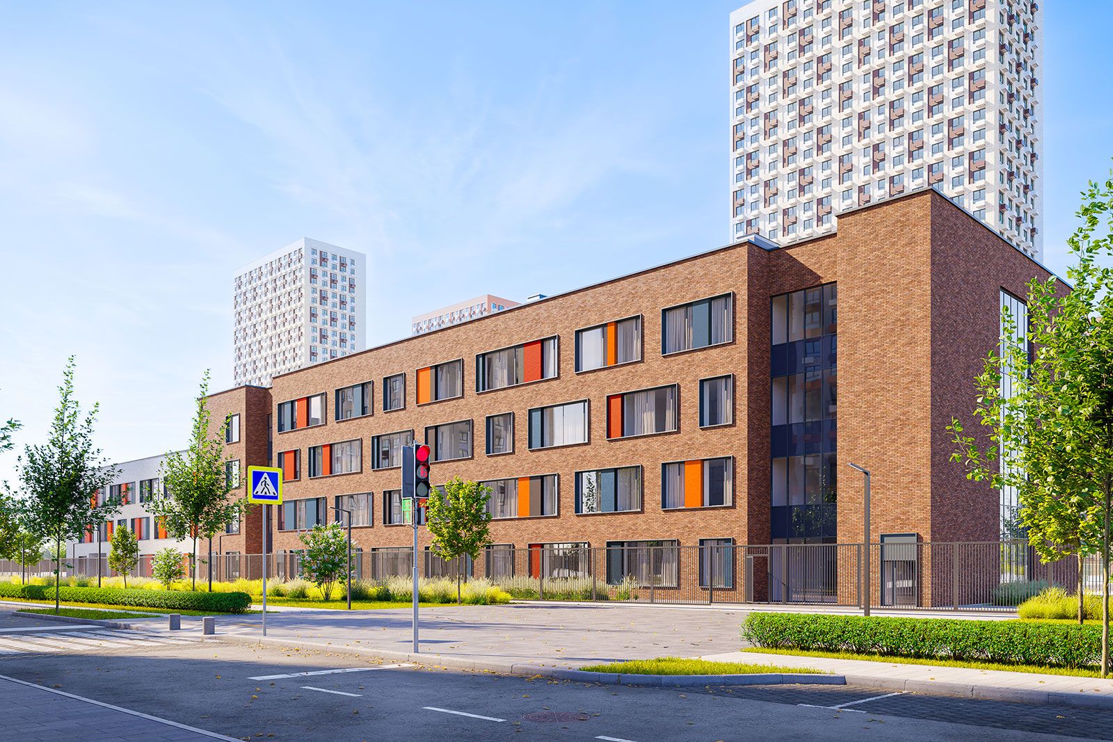 Школу в Западном Дегунине возводят с учетом принципов безбарьерной среды в составе крупного жилого комплекса. Строительная готовность составляет более 60 процентов. Площадь образовательного учреждения составит более 21 тысячи квадратных метров. У здания будет переменная этажность. Фасады отделают бетонной плиткой светлого и темного оттенка с витражным остеклением. Это позволит выделить разные функциональные объемы комплекса и гармонично вписать школу в окружающую застройку.