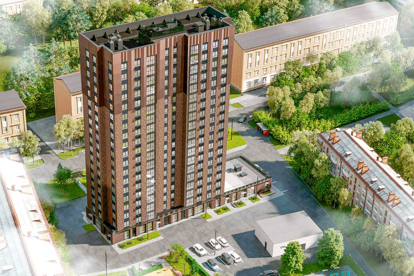 Проект дома предполагает монолитную технологию строительства с применением передовых инженерно-технических решений. За счет увеличенных окон в квартирах будет светло, балконы и лоджии остеклят, а для кондиционеров оборудуют специальные корзины. В отделке экстерьера здания используют системы навесных вентилируемых фасадов из бетонной плитки и металлических панелей. Цветовое решение выполнят в кофейных оттенках.