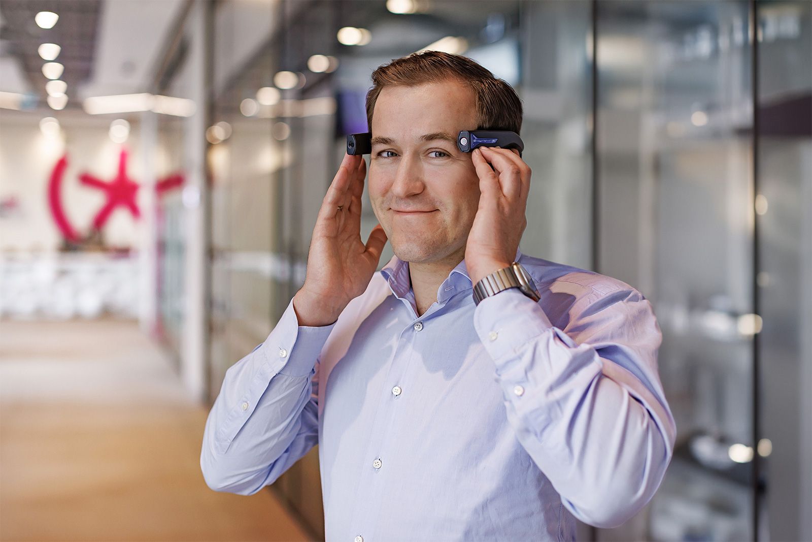 «В 2017 году наша команда впервые в стране поставила двум пациентам имплант на сетчатку. Это была зарубежная технология. Операции изменили в лучшую сторону жизни незрячих людей. И мы решили создать отечественное устройство, которое помогало бы возвращать зрение. В результате был разработан более сложный имплант, который помещается прямо в головной мозг. Он позволит восстановить зрение не только людям с нарушениями сетчатки, но и тем, у кого поврежден зрительный нерв, диагностированы неоперабельная катаракта и другие патологии, приводящие к слепоте. Глаз улавливает и преобразует свет в информацию, а в зрительной коре формируется представление об окружающих объектах. Наш имплант напрямую работает с мозгом и передает электрические импульсы, благодаря которым возникают визуальные образы. Устройство состоит из двух компонентов: обруча на голову с камерами, снимающими и преобразующими картинку в сигнал, а также самого нейроимпланта», — рассказал генеральный директор компании «Нейроимпланты Elvis» Денис Кулешов.
