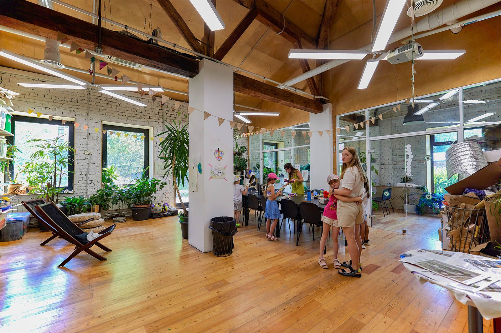 Ребят от шести лет родители могут оставить в формате свободного пребывания под присмотром сотрудников и посвятить несколько часов себе, пока ребенок изучает мир, играет и создает необычные арт-объекты из экологичных материалов. В пространстве есть библиотека и оранжерея, где зимой и летом юные посетители ухаживают за растениями.