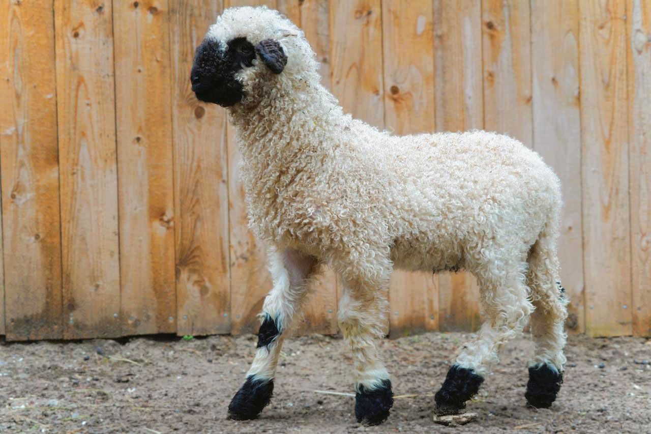 Новорожденный — представитель породы валлийских овец, которых отличает контрастный окрас: белая пушистая шерсть сочетается с черной мордочкой и темными ножками. Пока у ягненка кудрявая шерстка еще короткая, но скоро он подрастет, и она станет густой и пушистой.