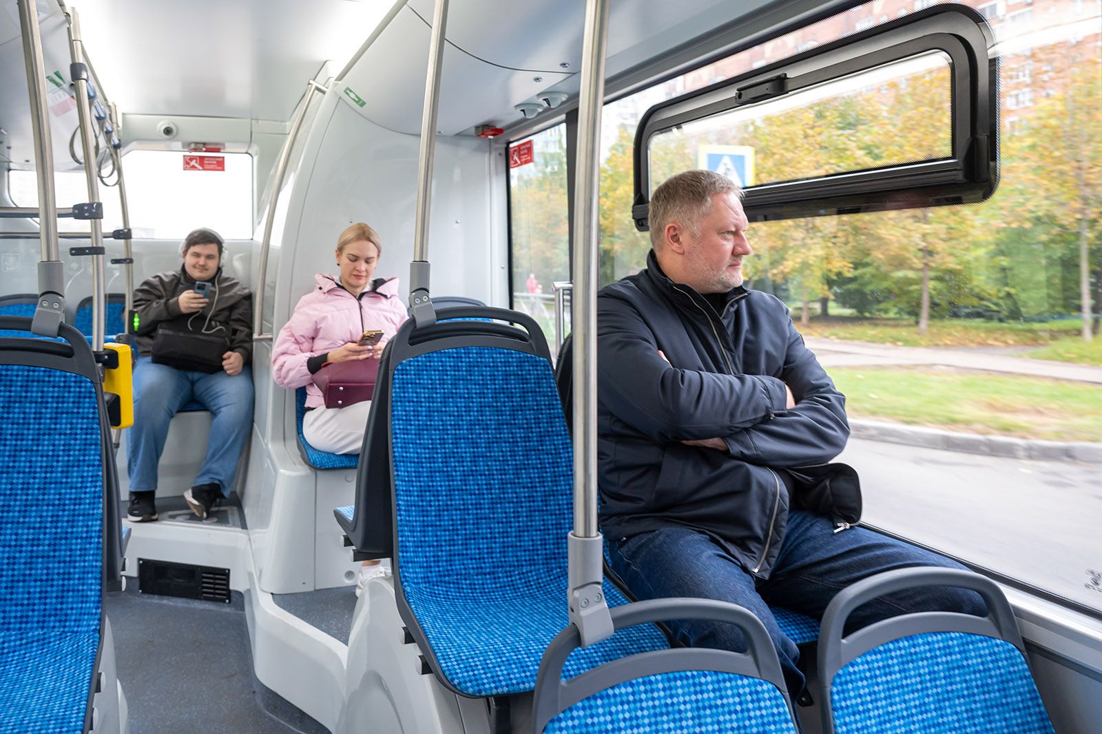 У низкого пола в салоне автобуса рекордная площадь — 13,6 квадратного метра. Кроме того, за счет новых конструктивных решений кузова увеличена ширина дверных проемов, проходов между сиденьями и накопительной площадки. Еще одно преимущество — вертикальные поручни, благодаря которым пассажиры могут свободно передвигаться по салону.