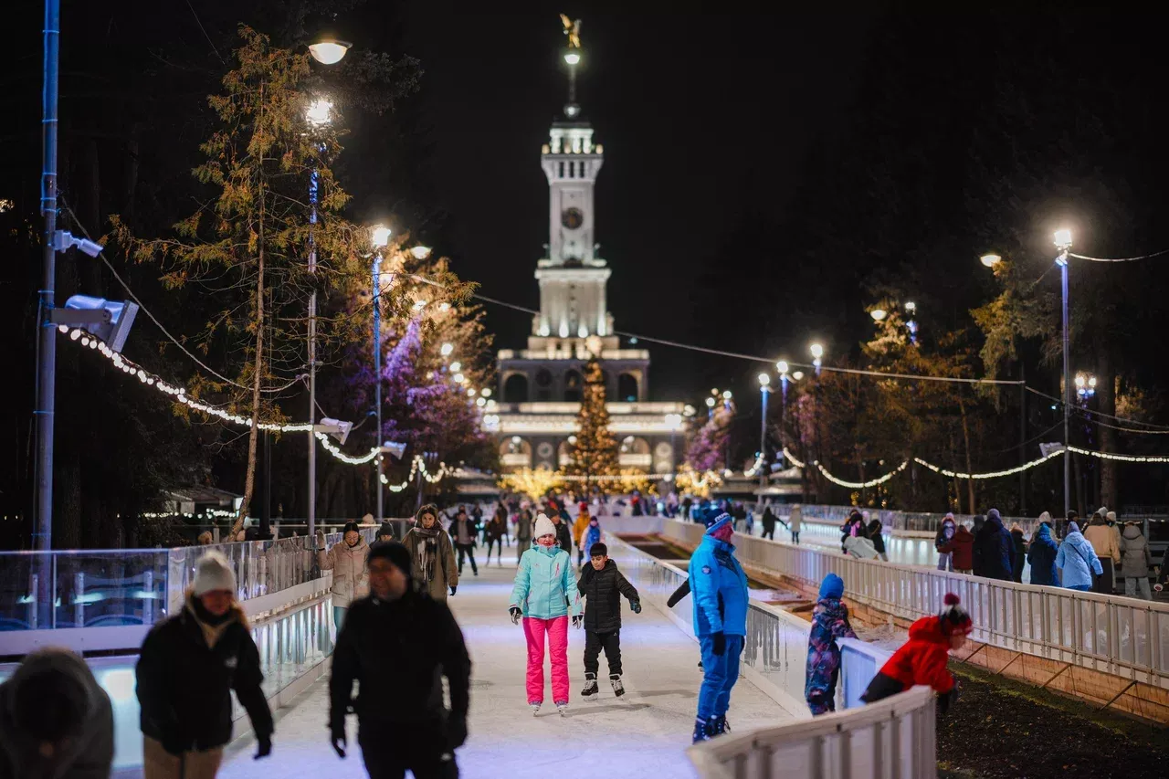 На территории Северного речного вокзала открыт масштабный каток в рамках проекта «Зима в Москве». В этом сезоне лед покрыл практически все парковое пространство, площадь комплекса — более девяти тысяч квадратных метров.