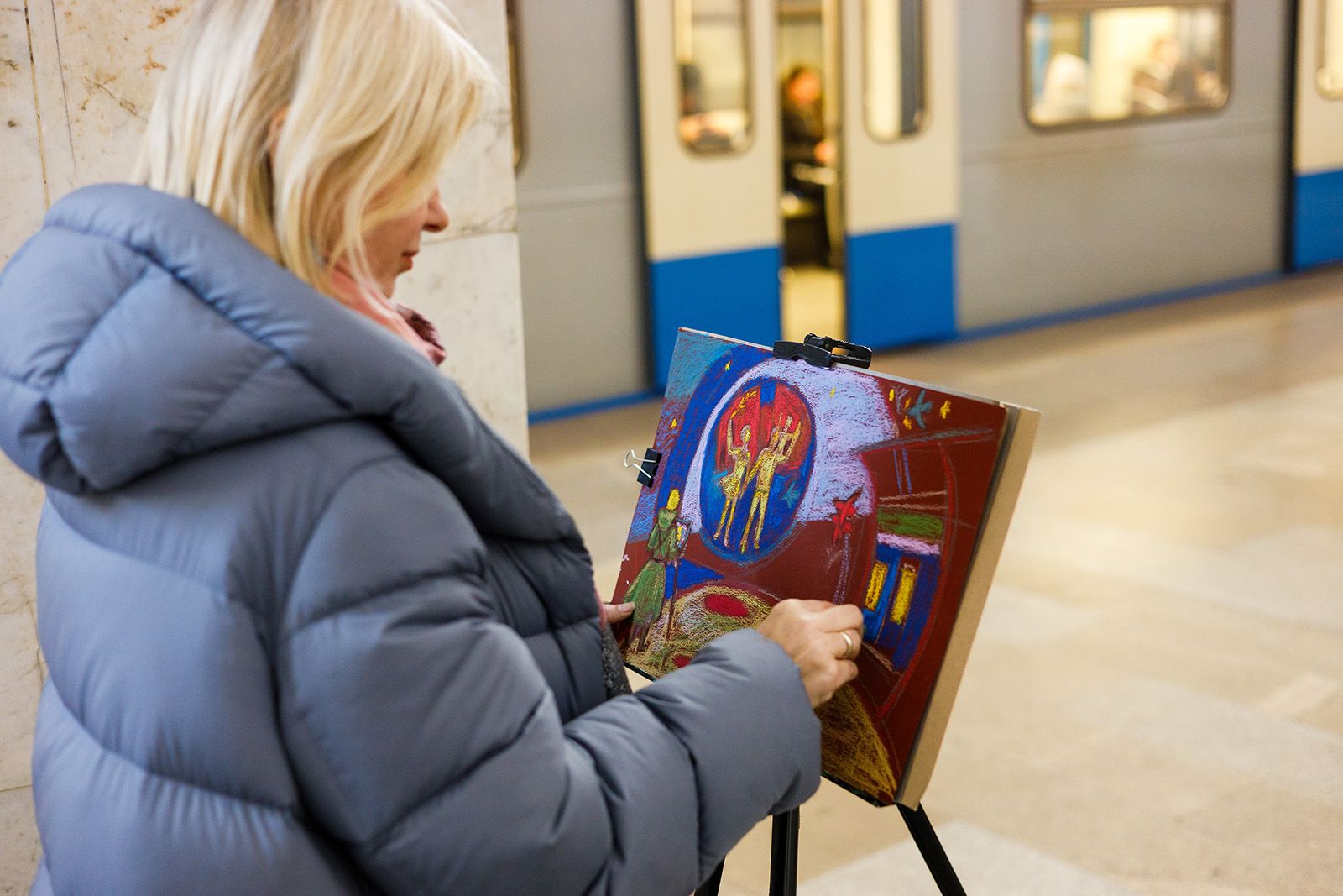 Анжелика Ермак участвует в проекте «Искусство в метро» с июня 2024 года. Она пишет маслом, рисует сухой и масляной пастелью, а также работает в смешанных техниках с использованием маркеров и карандашей.