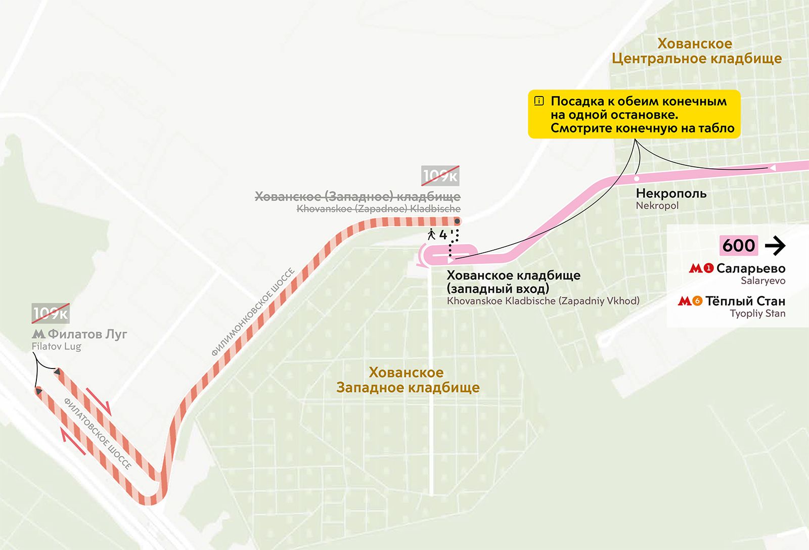 Маршрут № 109к больше не действует. Вместо него пассажирам рекомендуют пользоваться автобусами № 600.