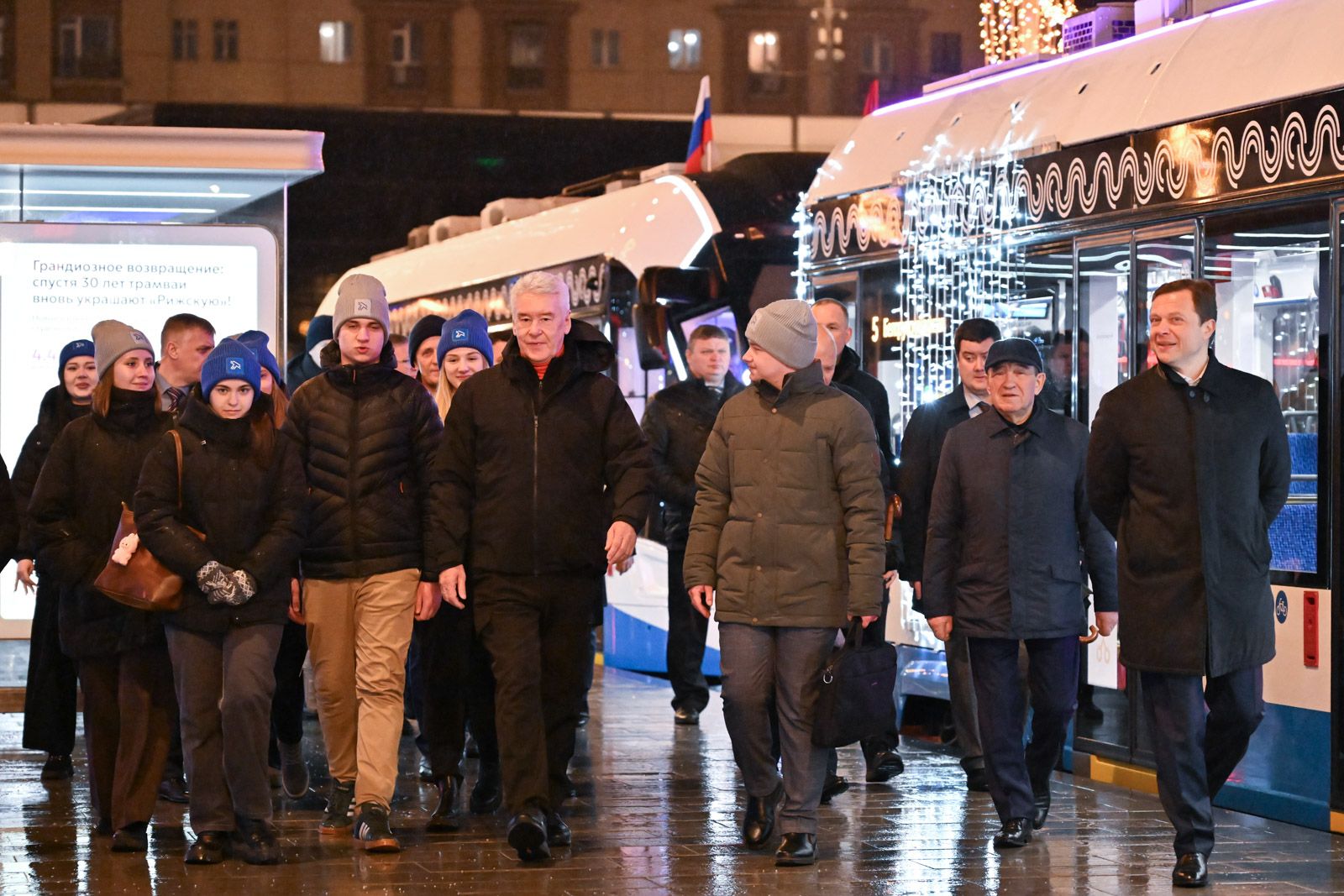 Сергей Собянин открыл новую трамвайную линию на Трифоновской улице.